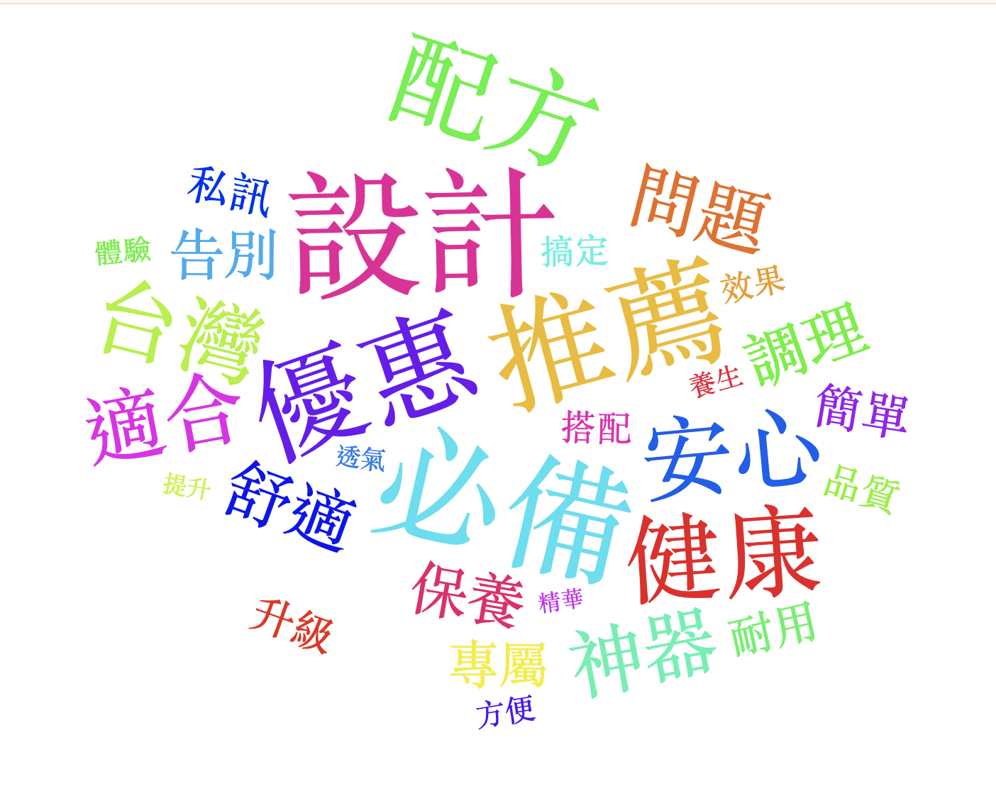 本週(03/07~03/13)Top 關鍵字以「設計/必備/推薦/優惠/配方」為主軸,搭配「健康/安心/台灣/神器/舒適/調理/保養/私訊/體驗/升級」等字眼;整體內容明顯更集中在居家與個人護理型商品,像是潔牙器、五爪扣、研磨機、護腰帶、車用手機架等「日常必備神器」,同時大量混入疼痛舒緩、抗老保養、美妝彩妝與養生食品的功效式推銷,另也穿插服飾代購、命理運勢與中古車貸款等導流內容。常見套路依舊是:先用「醫師推薦/台灣出貨/限時優惠/買一送一/前後對比/快速見效」吸引你 → 再丟短網址、要你私訊/留言/填聯絡方式 → 接著導向站外下單、蒐集個資,或進一步推銷高單價商品與金融服務。
