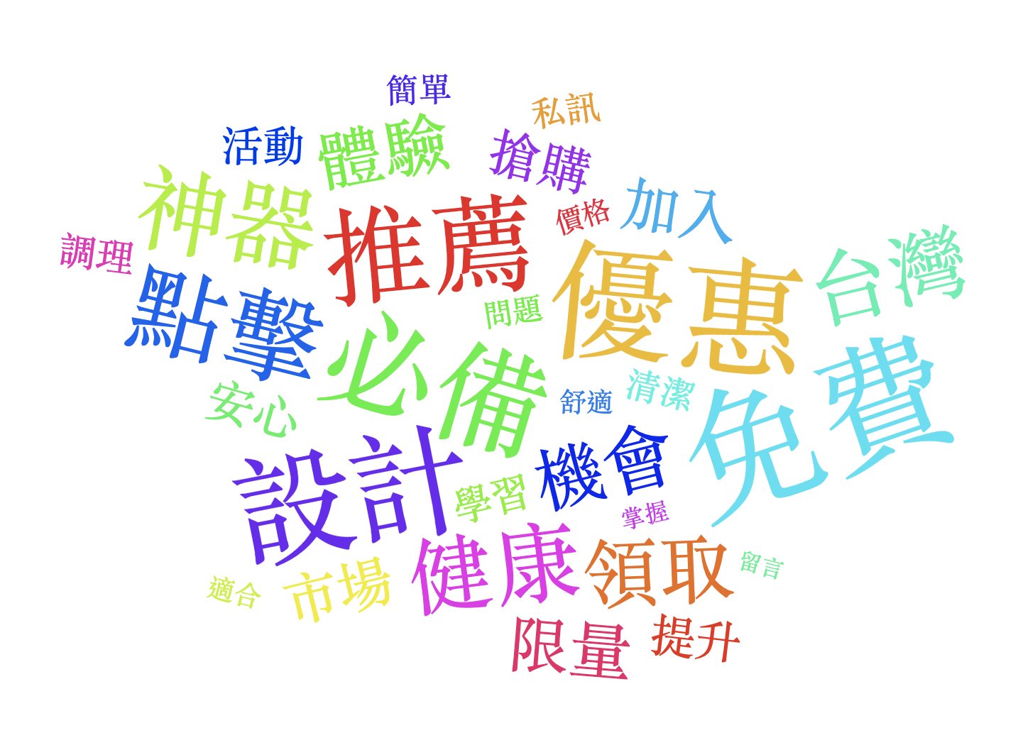 保健、瘦身與清潔用品持續活躍,以「天然、安全、無副作用」為主軸,搭配「神器、黃金比例、快速見效」等誇大形容。
