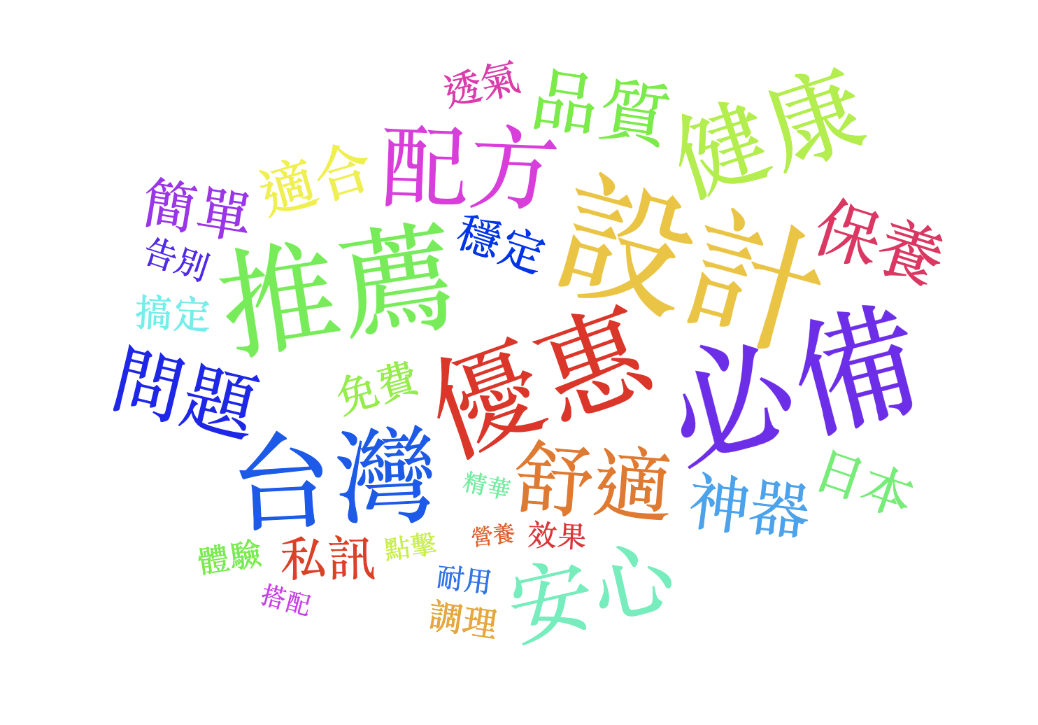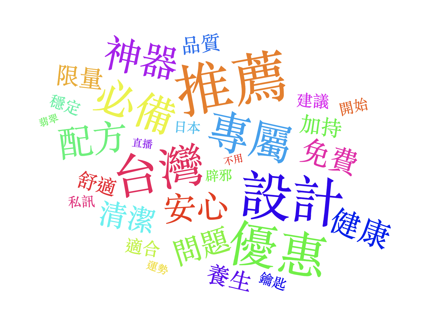 本週(02/28~03/06)Top 關鍵字以「推薦/設計/優惠/台灣/專屬/必備」為主軸,搭配「神器/配方/安心/健康/免費/限量/私訊/直播」等字眼;整體內容仍以商品導購與情境式銷售為大宗,涵蓋香水、服飾代購、美妝、居家清潔、除蟎家電、工具、養生食品與行動電源,同時也混入中古車貸款、負債整合、被動收入課程、命理運勢與翡翠直播等高風險導流。常見套路依舊是:先用限時優惠/買一送一/台灣製造/正品保證/免費評估吸引你 → 再丟縮網址、表單或要你加 LINE/私訊/留言 → 接著導向站外付款、蒐集個資,或進一步推貸款、課程、投資與高單價商品。