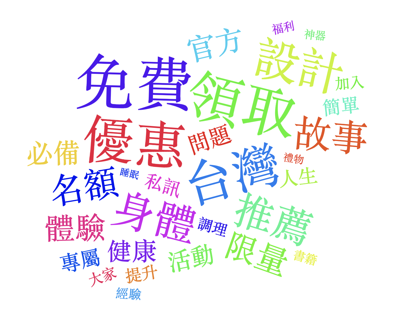 本週(11/29~12/05)的熱門關鍵字,多圍繞在「免費/優惠 × 展覽、體驗課」「健康調理 × 中高齡商品」,外加「在家手作副業」「護理轉職升級」「市場交流社團」等。多以「限量、免費、不收費」搭配留言+加 LINE、短網址表單,把人導向行銷或高額方案。