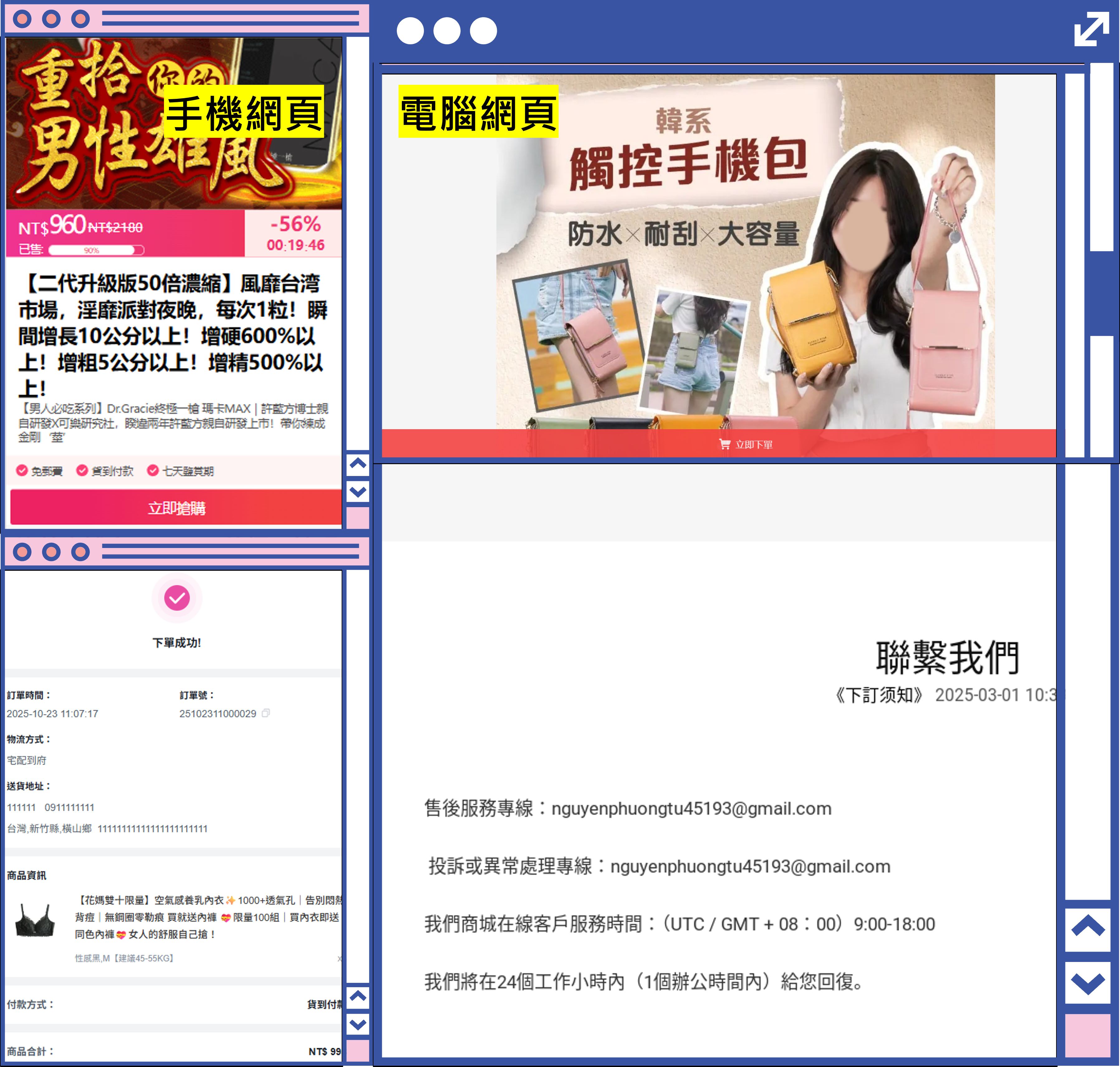 🧨不法分子架設簡陋的一頁式網站,以低價吸引消費者下單