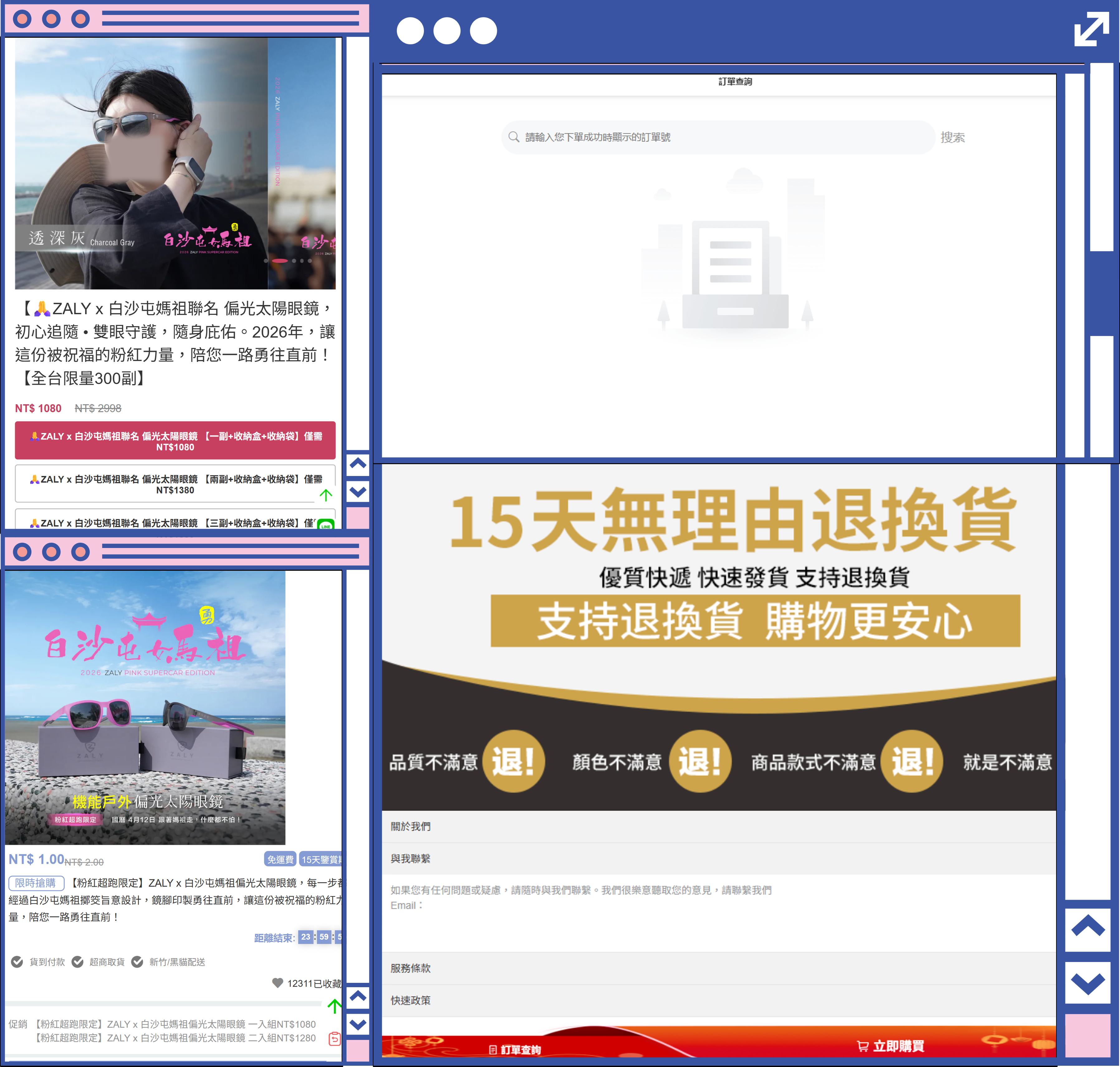 🛠️未代理網紅商品:部分網站販售標榜國外爆紅、卻在台灣沒有正式代理的流行商品,常以限量、熱銷等話術吸引下單,但商品來源與品質難以查證,售後服務也可能不存在。面對來路不明的熱門商品,建議先確認代理資訊與評價再做決定。