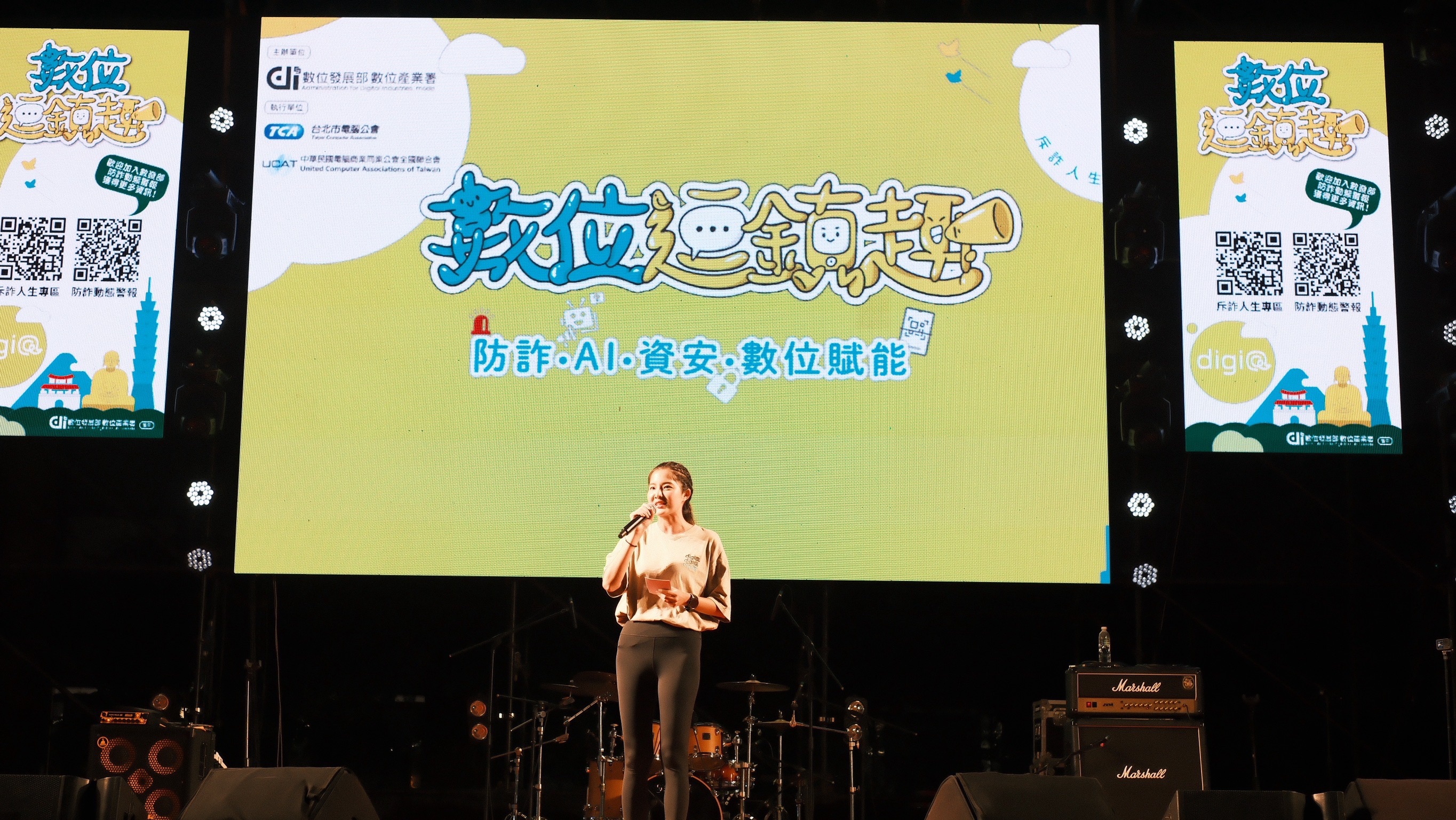 在選手之夜活動中,數位產業署特別邀請台灣小姐邱怡澍Joyce擔任digi@防詐主持人,以生動有趣的方式向民眾宣導防詐觀念。主持人還準備了精美小禮物進行有獎徵答,現場氣氛熱烈,互動歡笑聲不斷,讓防詐知識輕鬆融入活動之中。