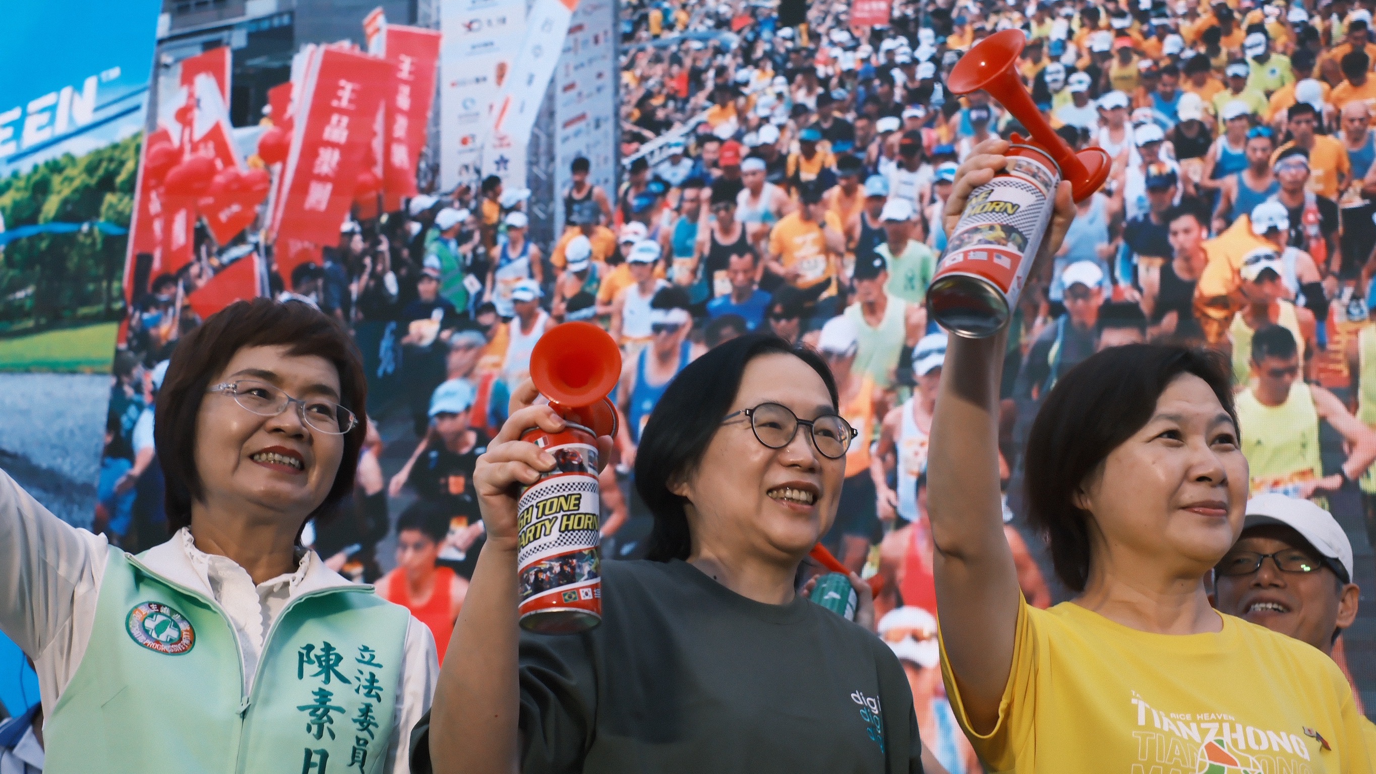 而11月9日舉行的田中馬拉松賽事中,42公里全馬組由數位發展部侯宜秀次長擔任鳴槍嘉賓,21公里半馬組則由數位產業署林俊秀署長親自鳴槍。隨著槍聲響起,選手們在起跑線整裝待發,與「數位逗鎮趣」一同奔向賽道,象徵以行動展現數位力,邁向更安全智慧的未來。