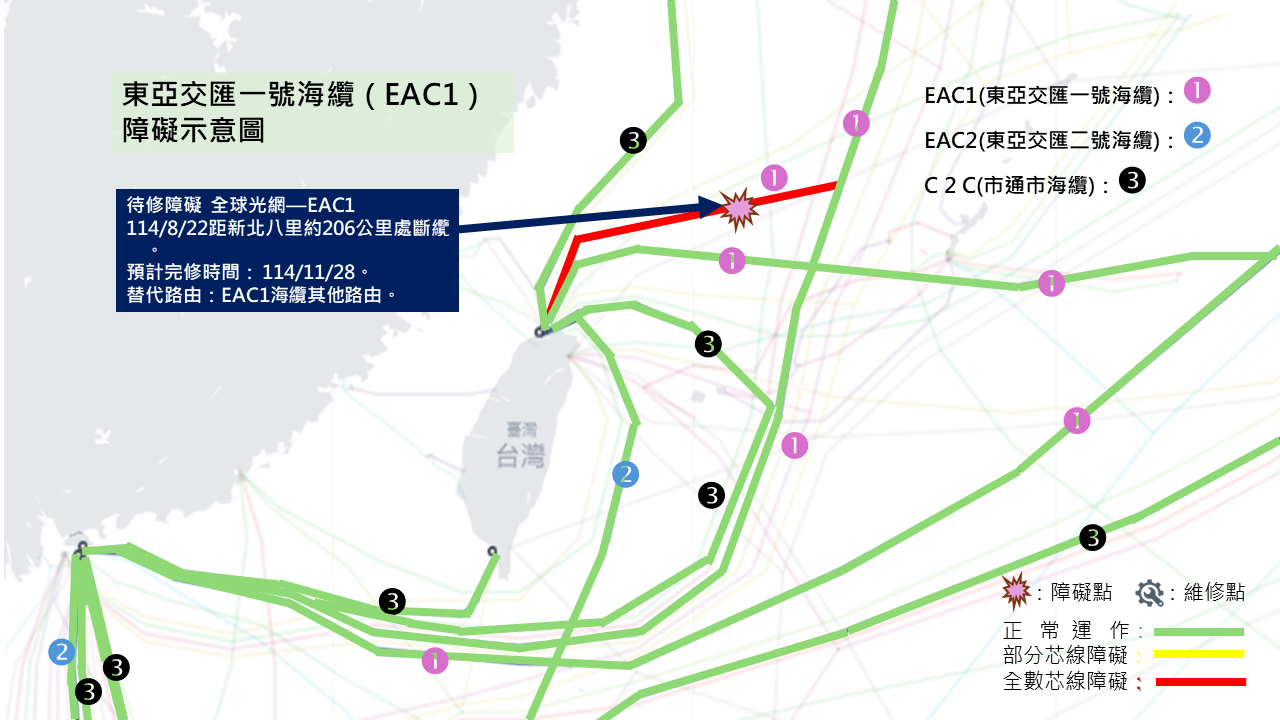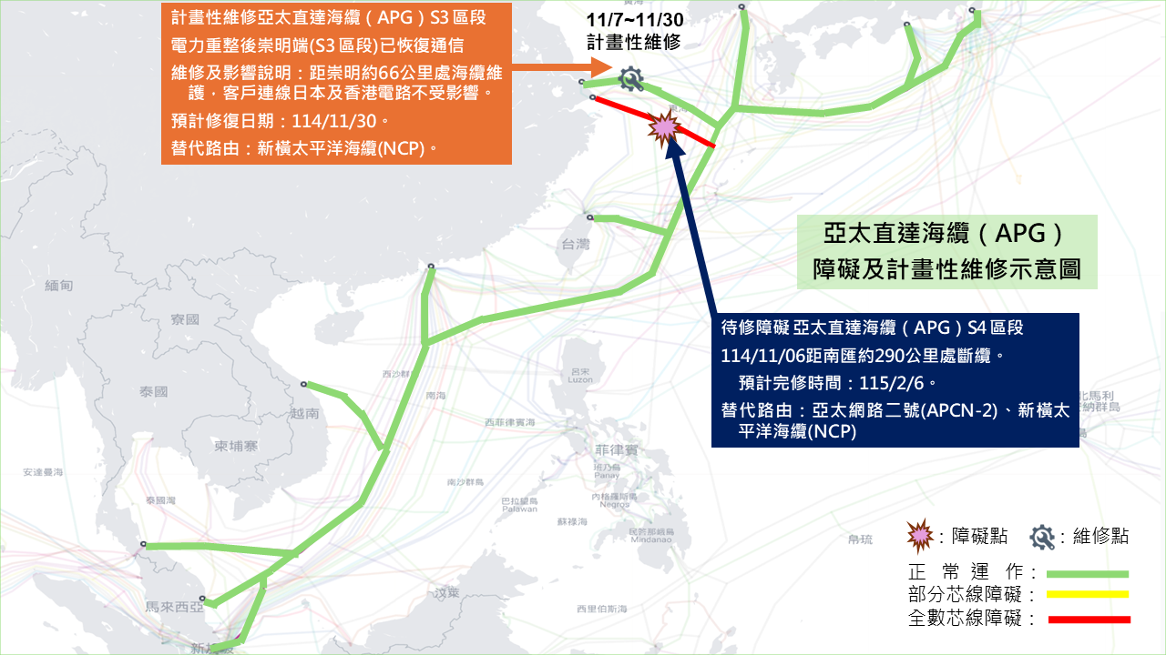 六、亞太直達海纜障礙及計畫性維修示意圖